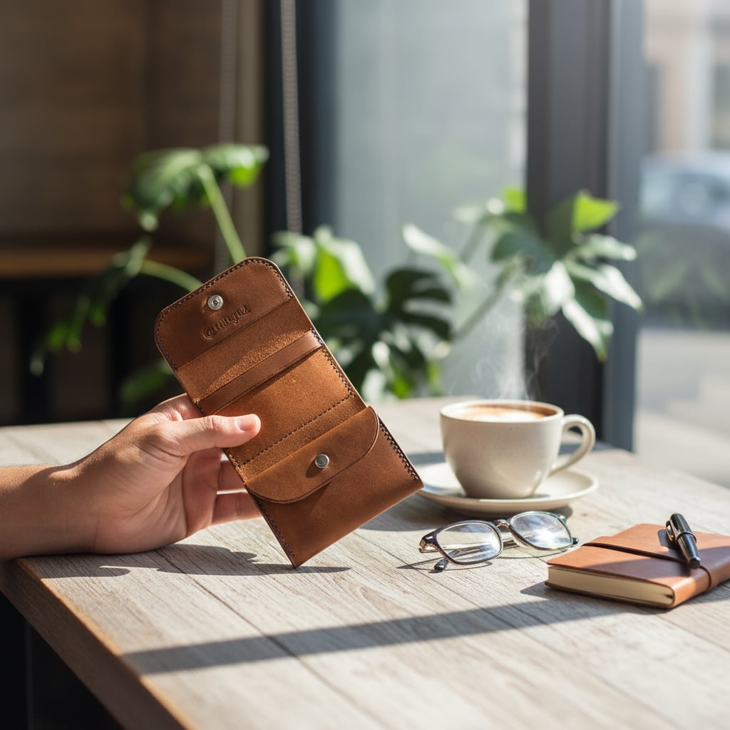 国産たつのレザーを使用した高級感あふれるミニ財布です。